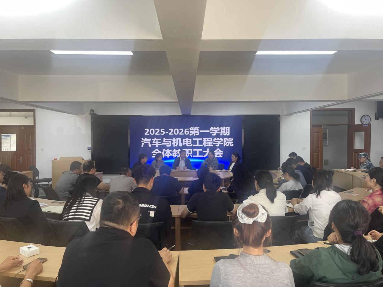 9月9日下午,在第41个教师节来临之际,汽车与机电工程学院在启智楼325教室举办了新学期全院教职工大会。学院领导在总结上学期各项工作成果并部署新学期的各项工作安排后,着重强调了学院在学校2025年教师节表彰评选活动中的优异表现:学院获得三育人先进集体和师德先进集体两项荣誉称号,学院教师获得优秀教师、师德先进个人、三育人先进个人、学生工作先进个人、科研工作先进个人奖项共计11人次。希望学院全体教职工以受表彰的同志为榜样,踔厉奋发、勇毅前行,继续奋力推动学院教育教学工作高质量发展,为学校快速发展贡献自己的力量。